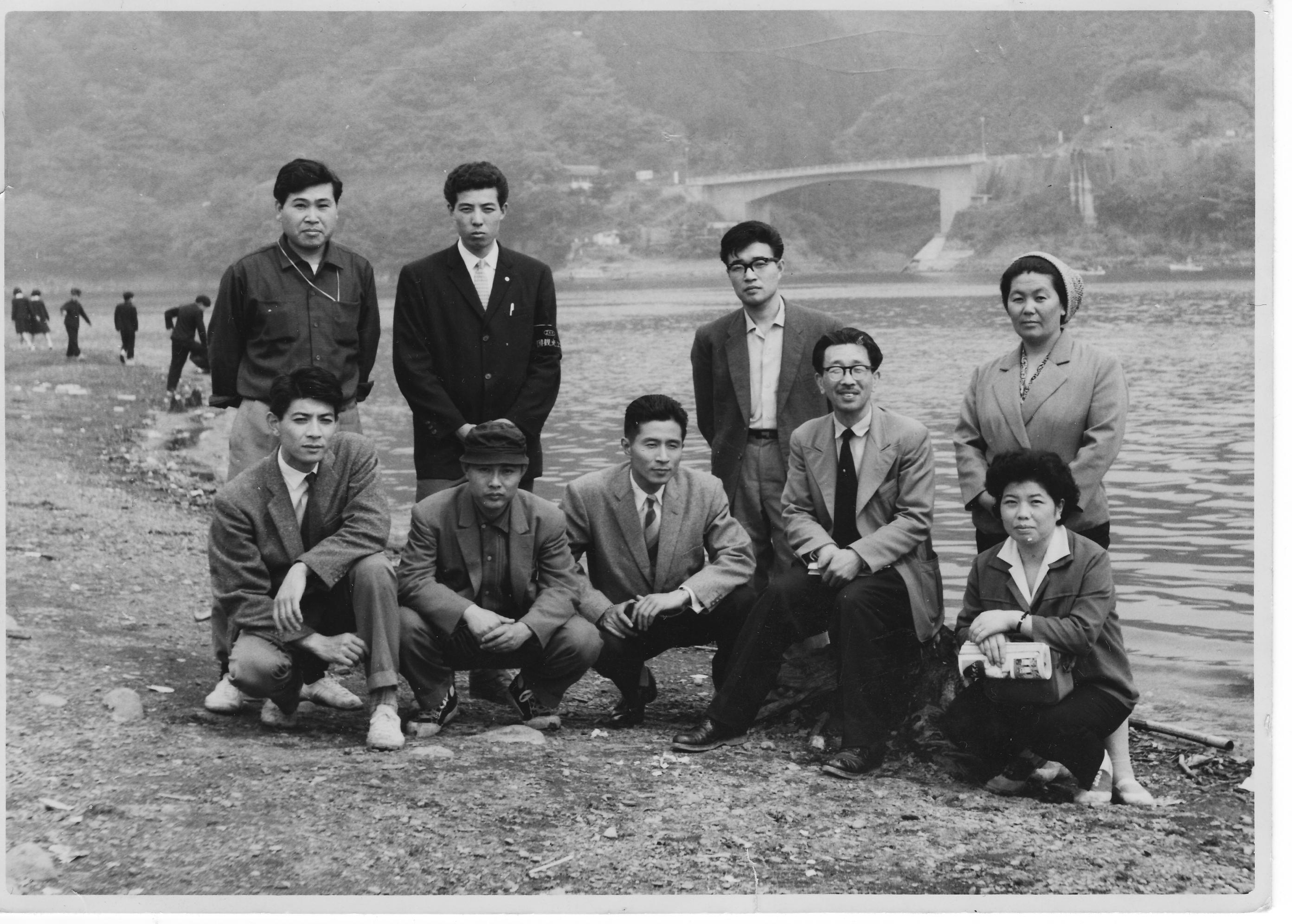 I was a LOM(just Looking and Listening Only Member) thinking around fifty years.                現れた写真。何人かが持っている模様。「修学旅行、先生と添乗員」という題か。(白須さん提供)
