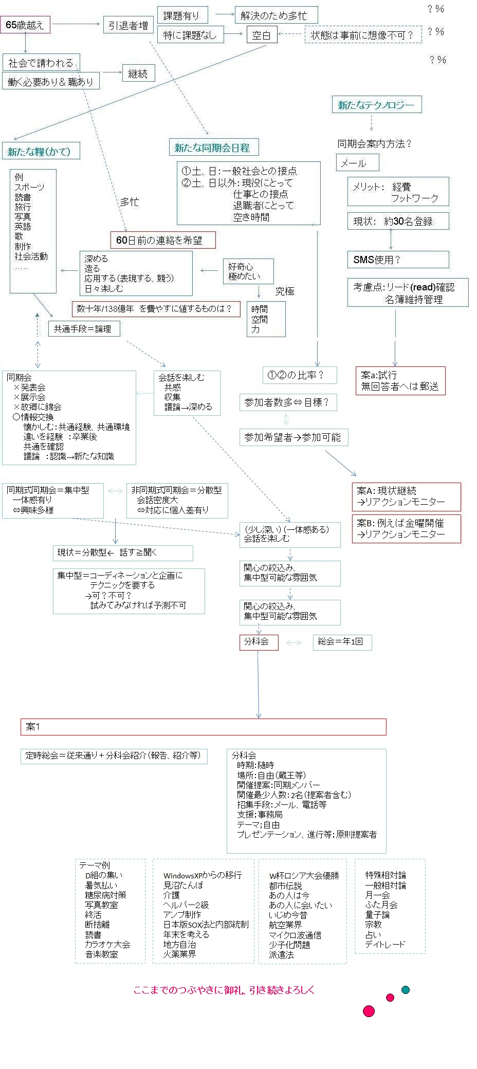 ・更なる年齢的、時代的要請等に応えるべく分科会の開催を検討し、その場合は従来の同期会を同期会総会と位置付ける。