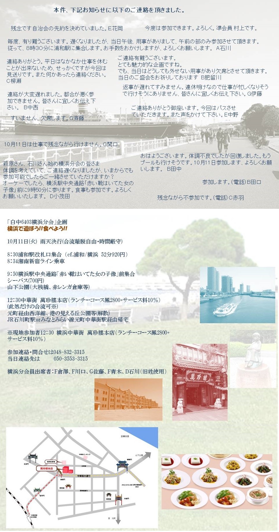 昨日は楽しいイベントありがとうございました。 私は、午前中山下公園でオカリナの演奏をしていました。 童謡唱歌演歌フォークソングその他聞いてくれる人に合わせて一時間位。 それから、中華街のお店で皆さんと合流です。オカリナ奏者:村上でした。